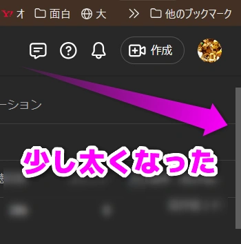 横のスクロールバーも太くなりました。