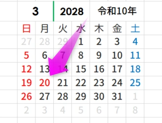 そう、実は2028年は20日の月曜日が春分の日なのだ。