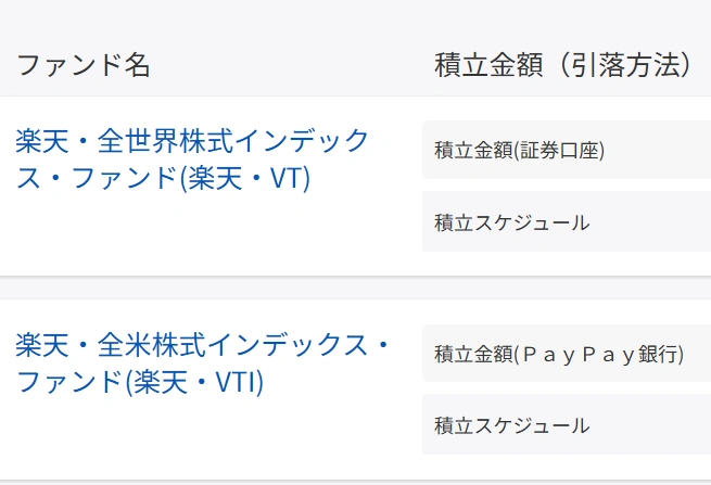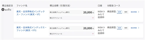 「楽天・全米株式インデックス・ファンド(楽天・VT)」に2万円の合計4万円です。