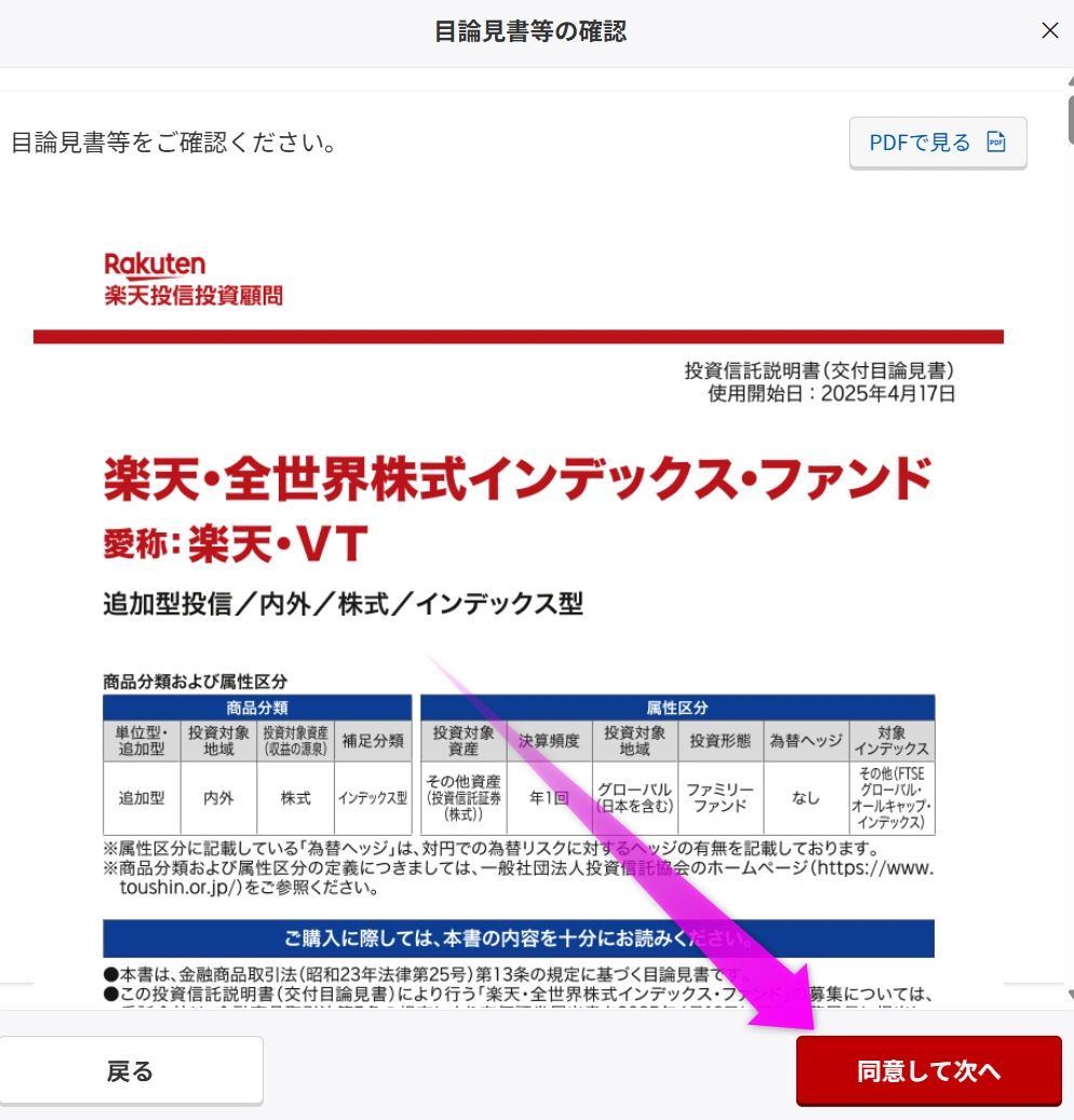 一応商品自体は変更しないので、ざっと目を通して右下にある「同意して次へ」をクリック。
