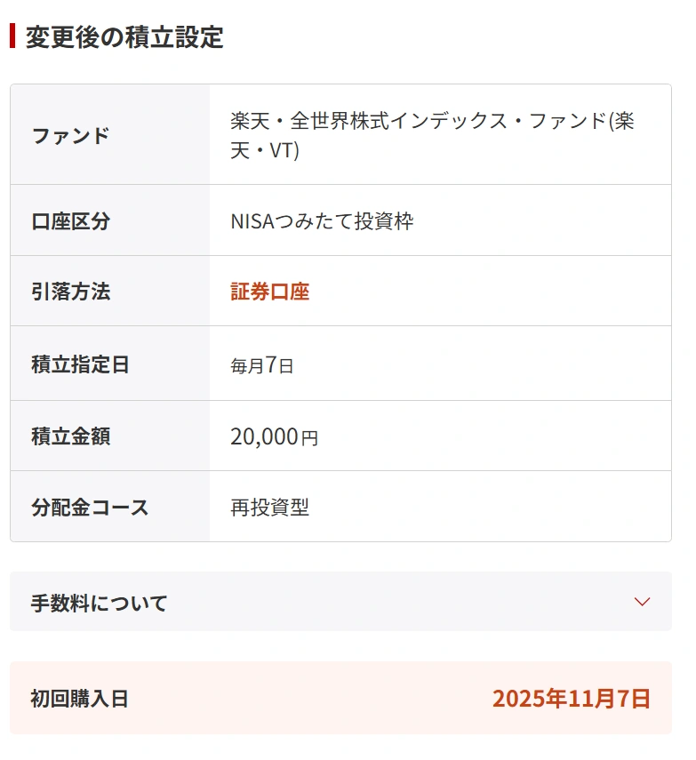 もうひとつの「楽天・全米株式インデックス・ファンド」の方も同じようにして変更します。
